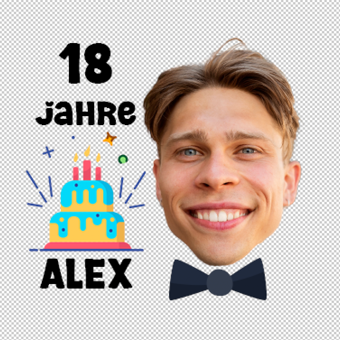 - Persönliches Design mit Gesicht, Wunschalter und Sektgläsern