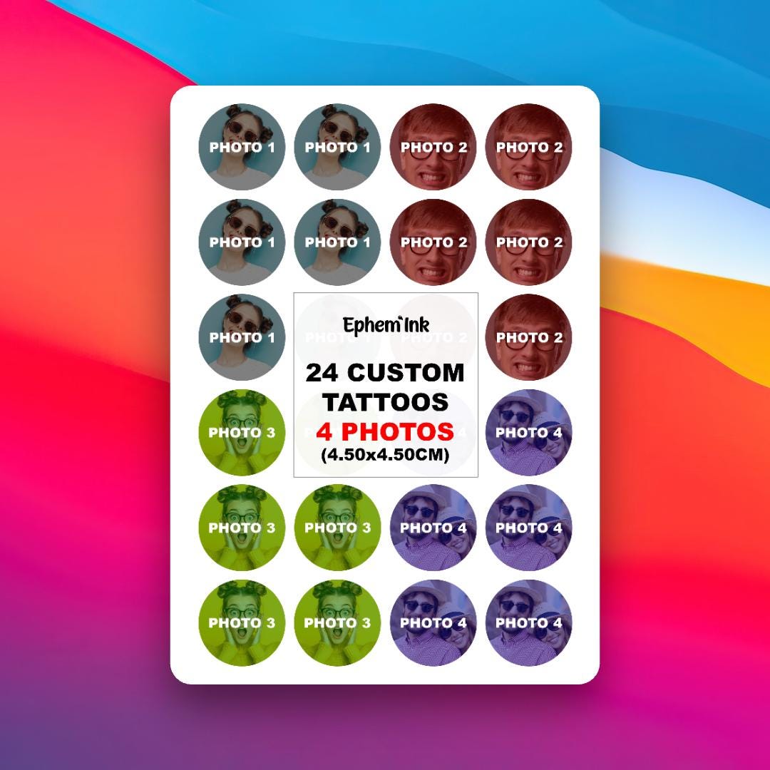 Set mit 24 personalisierten temporären Tattoos aus vier Fotos